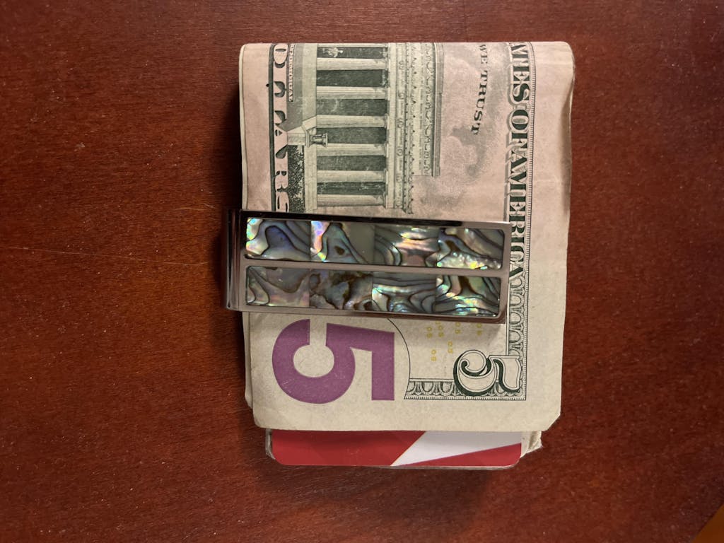 Ted G. Want a light weight money clip that’s not cumbersome? This stylishly adorned Dragon Abalone money clip is a perfect conversation piece when you offer to pay for that next round with friends! It holds my credit card, license and bills. Why carry a bulky wallet when this is all you need for a night out.